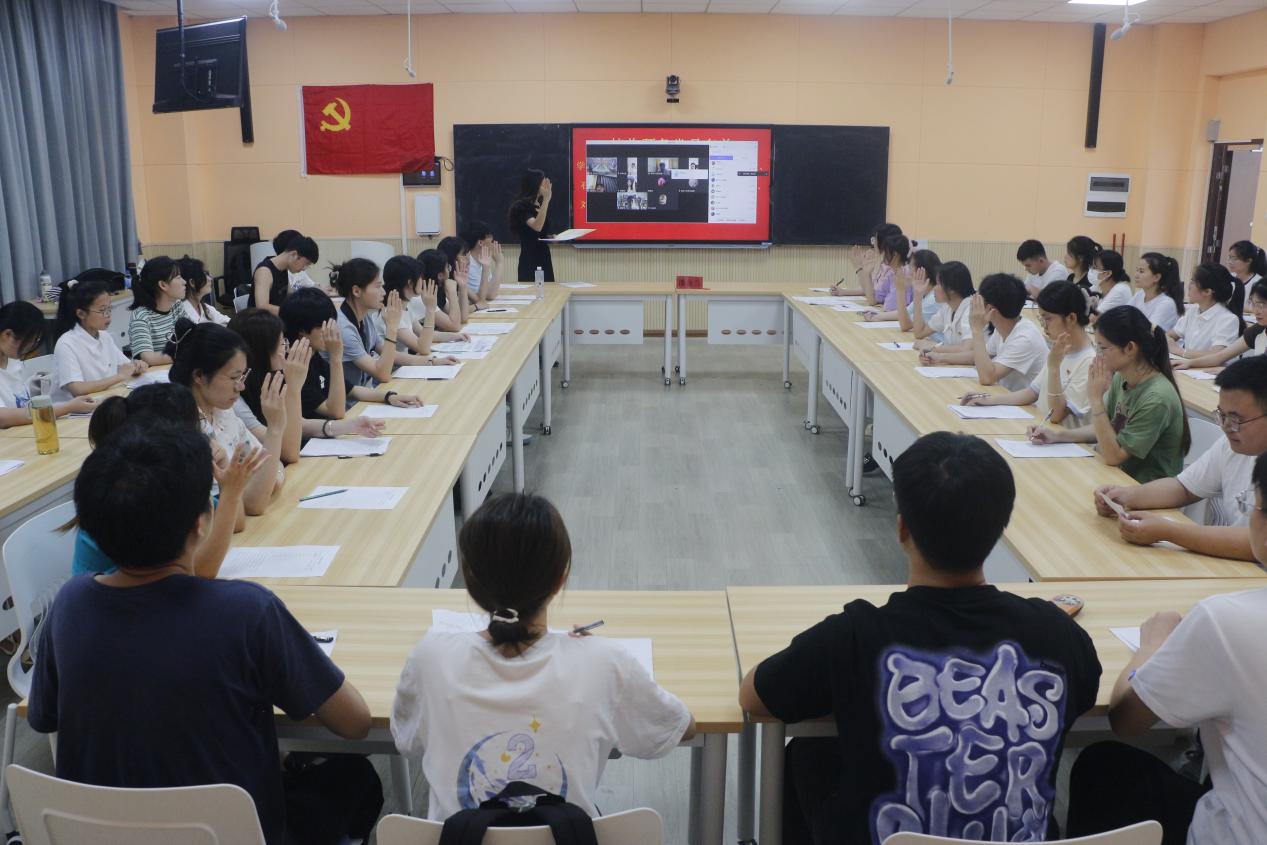 6月6日,伟德国际VICTOR1946学生第三党支部在我校东校区新民楼c101室召开2023年春季期预备党员转正讨论大会。本次会议由党支部书记潘金兰主持,学生第三党支部全体党员通过线上线下相结合的形式共同参与。