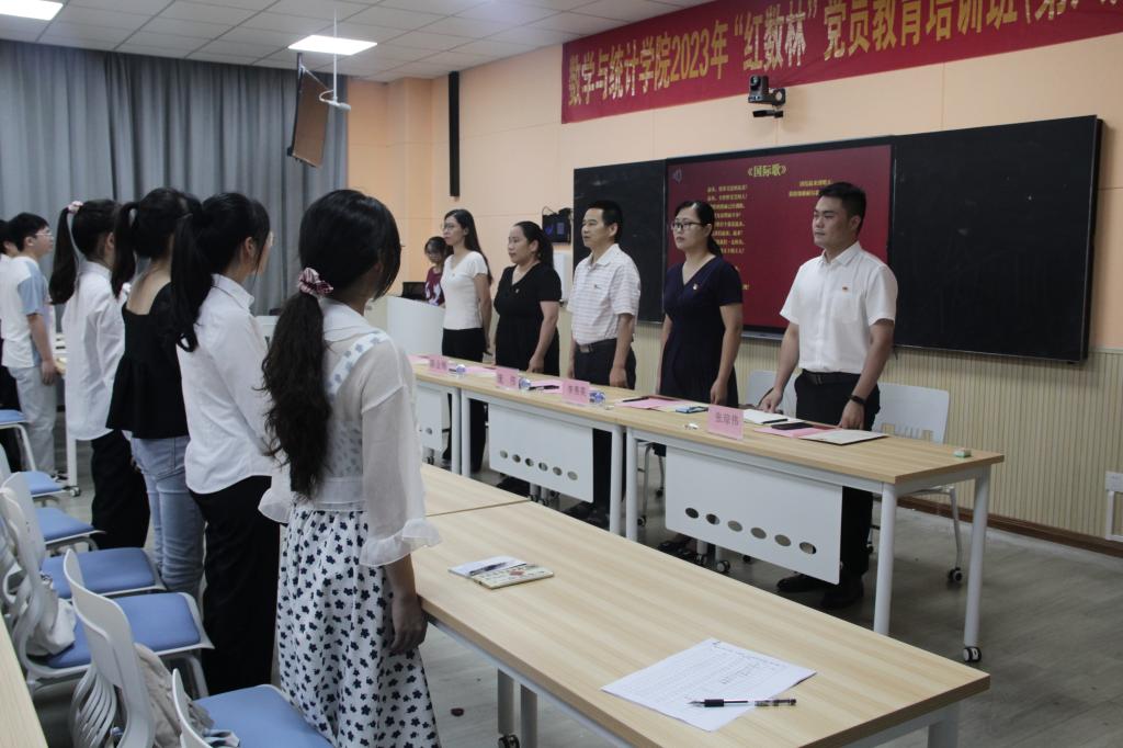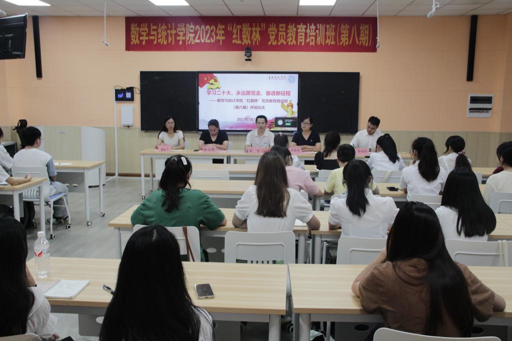 7月7日,伟德国际VICTOR1946于我校东校区新民楼c101教室举行“红数林”党员教育培训班(第八期)开班典礼。学院党委书记庞伟、党委副书记李秀英、党委专职组织员陈金梅、第三党支部书记潘金兰、辅导员张琼伟及我院全体党员参与。此次开班典礼由陈金梅主持。