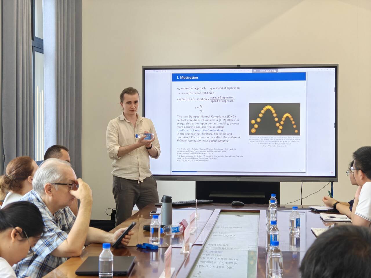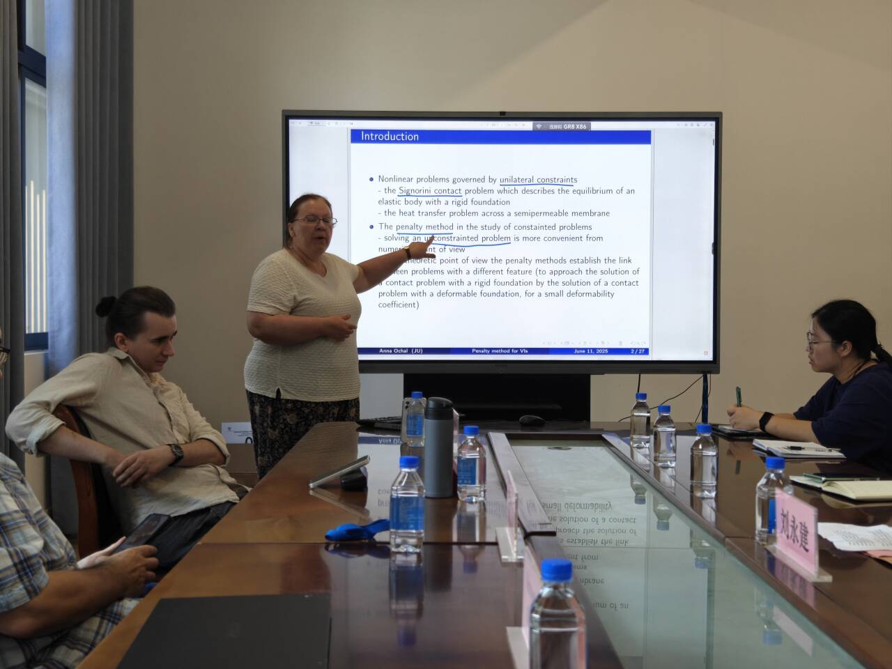 随后,雅盖隆大学Anna Ochal教授、Krzysztof Bartosz教授和Piotr Bartman-Szwarc博士分别作了题为《A new penalty method for variational inequalities》《Existence of a weak solution for dynamic adhesive Signorini's contact problem》和《Modeling and Simulation of Dynamic Contact with Dumped Normal Compliance》的学术报告。三位学者从不同角度分享了各自研究领域的最新成果,内容涵盖变分不等式的新型惩罚方法、动态粘性Signorini接触问题的弱解存在性,以及带阻尼正态柔性的动态接触建模与仿真等方面,为在场师生带来了一场精彩的学术盛宴。