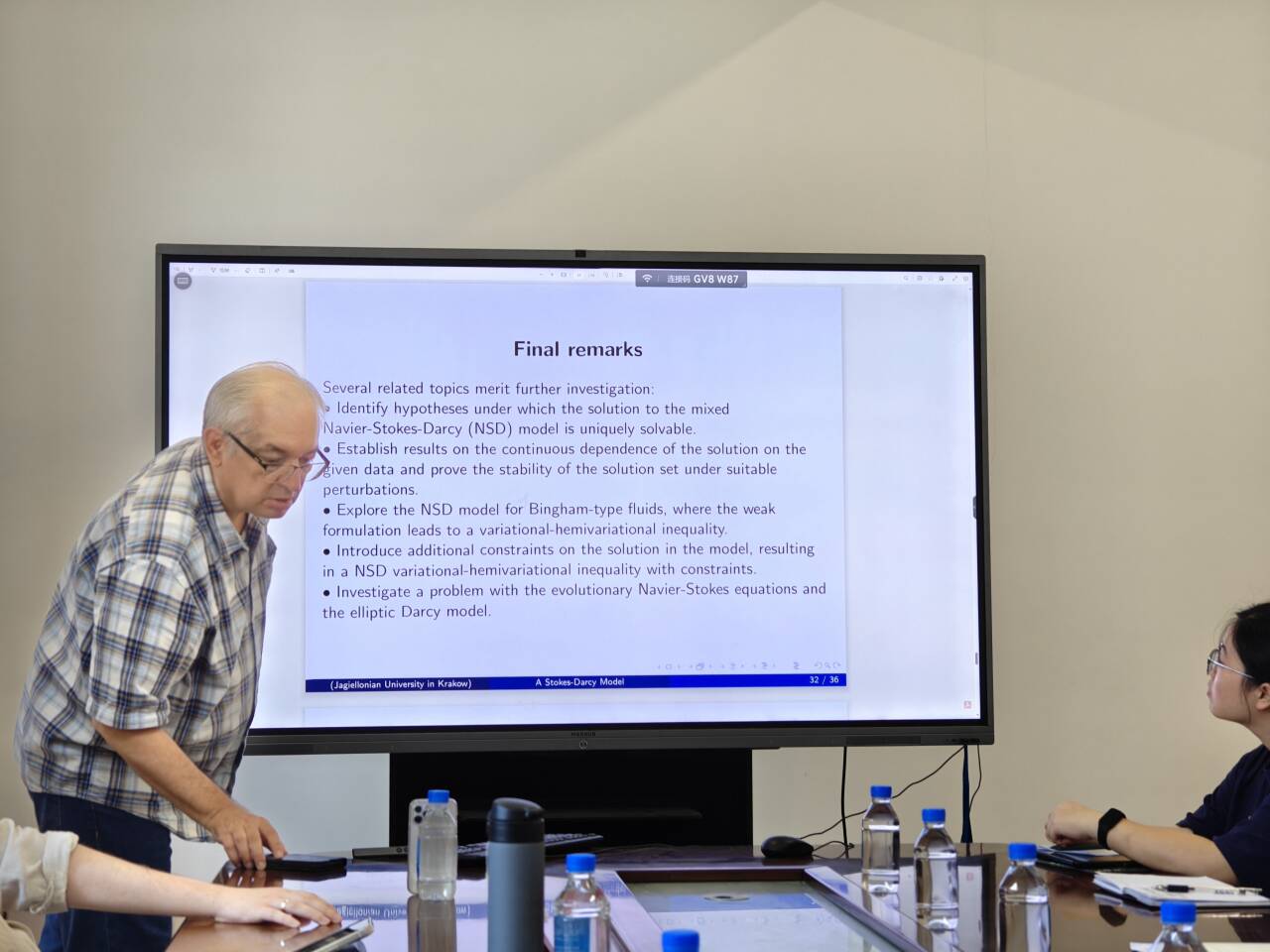 报告会伊始,Stanislaw Migorski教授以《Evolutionary Stokes-Darcy Model Governed by a Hemivariational Inequality》为题作学术报告。Migorski教授系统阐述了基于H-半变分不等式的Stokes-Darcy模型的构建过程,并运用非光滑分析理论证明了该模型解的存在性。最后,他通过数值模拟实例展示了该模型的实际应用价值,为相关领域的研究提供了新的理论支撑和方法借鉴。