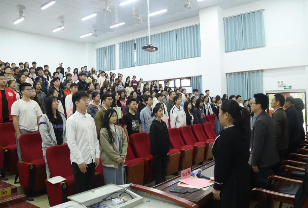 4月25日下午,我校2023年春季期入党发展对象培训班1班开班典礼在东校区至善102顺利举行。文学与传媒学院党委书记邱冠,外国语学院党委专职组织员曾宪明,美术与设计学院党委专职组织员李婷,伟德国际VICTOR1946党委书记庞伟、党委专职组织员兼培训班班主任陈金梅等出席开班典礼,入党发展对象培训班1班全体成员参加此次开班典礼,典礼由陈金梅主持。