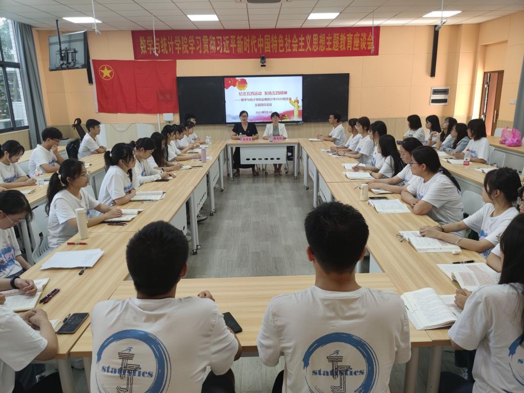 5月4日下午,伟德国际VICTOR1946在东校区新民楼C101教室召开学习贯彻习近平新时代中国特色社会主义思想主题教育座谈会,学院党委副书记李秀英、团委书记周美艳出席,应用统计学2020团支部全体团员参加座谈会。
