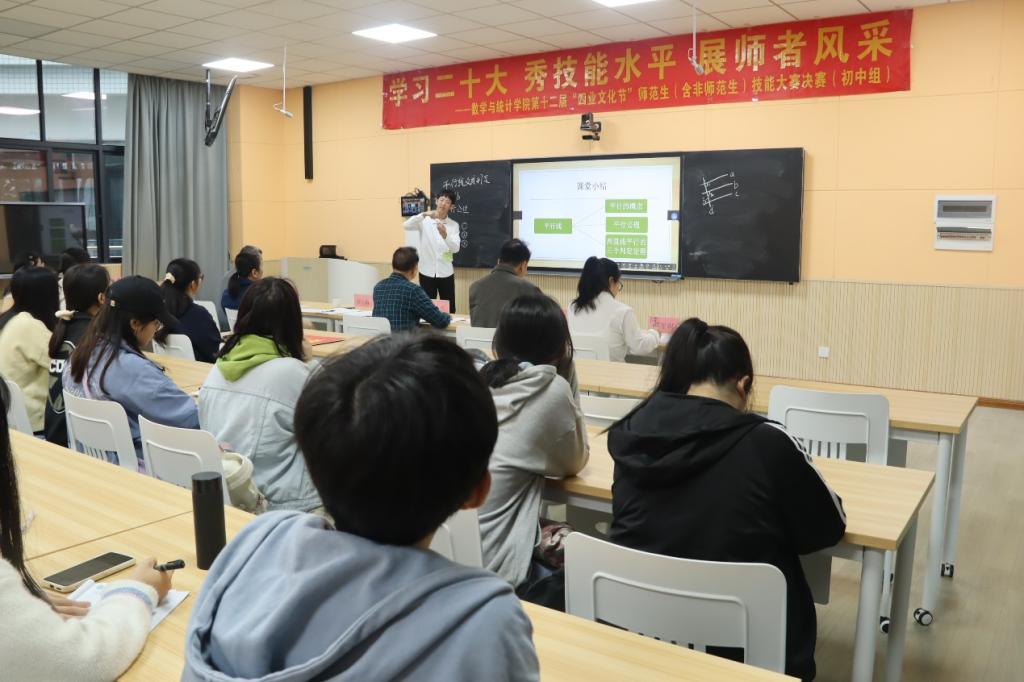 本次比赛分为初中组、高中组,主要围绕以教学设计、说课、模拟上课和板书等内容进行。评委从口语表达、教学姿态以及粉笔板书等多方面对参赛选手进行全面考评。赛场上,参赛选手从教材分析、教学目标、教学重点、学情分析进行各自说课材料展示,再围绕设计情景导入、探究、巩固新知等内容进行模拟上课和板书,充分展示个人的学科素养和教学技能。