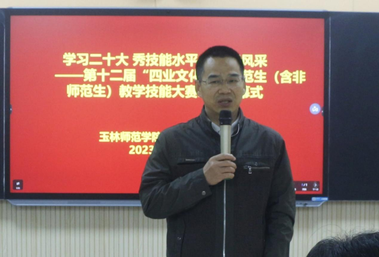 赛前,庞伟发表讲话,他表示,师范生教学技能比赛,既是对学院教育教学成果的一次大检阅,也是学院广大师生奋发向上精神风貌的一次大展示,对进一步营造尊师重教的良好社会风气,贯彻落实党的教育方针,推动学院教学质量提升具有十分重要的意义。他希望,同学们“以赛促学”,切磋技艺、展示才华,营造勤练教学技能、学好教学本领的良好氛围;“以赛促教”,进一步加强师范生专业技能的培养,提升师范生的教育教学能力,以良好的心理素质和精神风貌赛出风格、赛出水平。