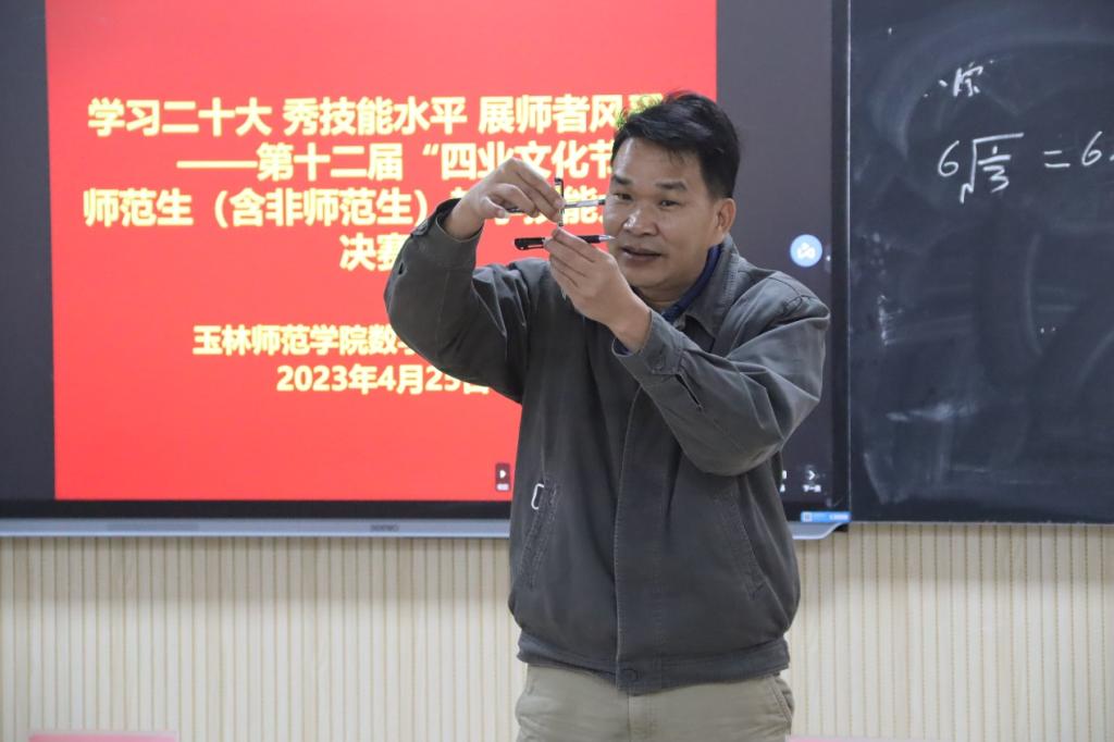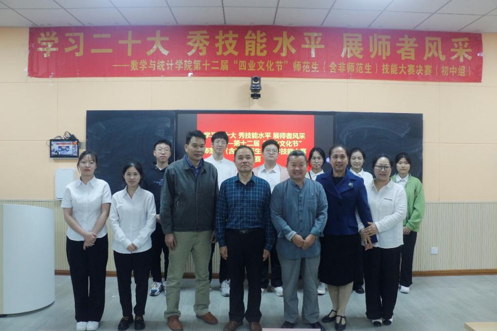 为进一步增强师范生(含非师范)的实践能力和创新能力,强化师范生(含非师范)专业技能。4月24日至25日,伟德国际VICTOR1946于我校东校区新民楼C102、C104、C203教室举办第十二届“四业文化节”师范生(含非师范)教学技能大赛院级决赛。学院党委书记庞伟、副院长王培(全面主持行政工作)、副院长杨京开等领导出席本次比赛,玉林市玉东一中莫罕瑞、天立高中文德君等中学一线教师以及我院数学骨干教师担任比赛评委。比赛以线上线下同步结合的方式进行,1000余人参与观摩。